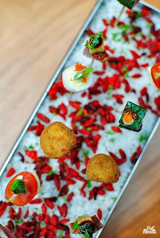 On the matter of the presentation, this appetizer is so freaking pretty, there were around three portions of Amuse Bouche flying in and each of them was decorated differently. Me loved the wrapped Tuna and the quails!
